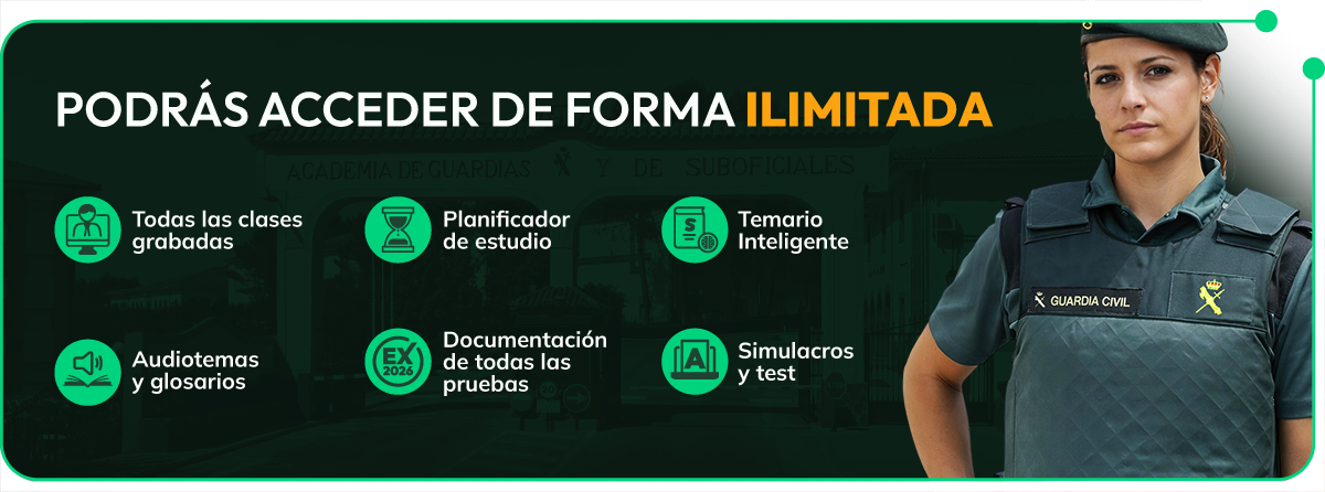 Podrás usar todas las herramientas que ofrecemos a los opositores para ayudarles a conseguir su plaza en la Guardia Civil. Y sin dar los datos de tu tarjeta o comprometerte a nada. Totalmente gratis durante 7 días.