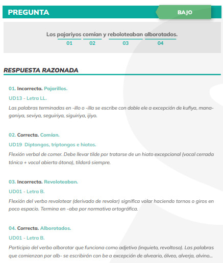 Las 6 preguntas de la prueba de ortografía también están recogidas en el informe del examen, así como su explicación y grado de dificultad. La mayoría, el 58%, eran fáciles.